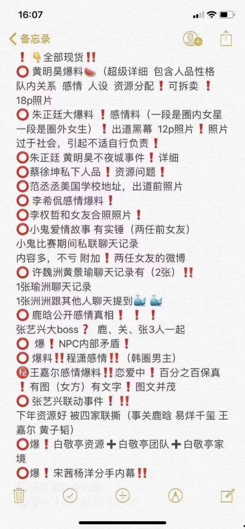 首先,得说说这张“朝阳黑料”。据说,这东西是某位知情人士匿名发布的,里面详细列举了娱乐圈内一些明星的“黑历史”。从偷税漏税到感情纠葛,从潜规则到暴力事件,可谓是应有尽有。这不禁让人感叹,娱乐圈的水,果然深不可测啊!